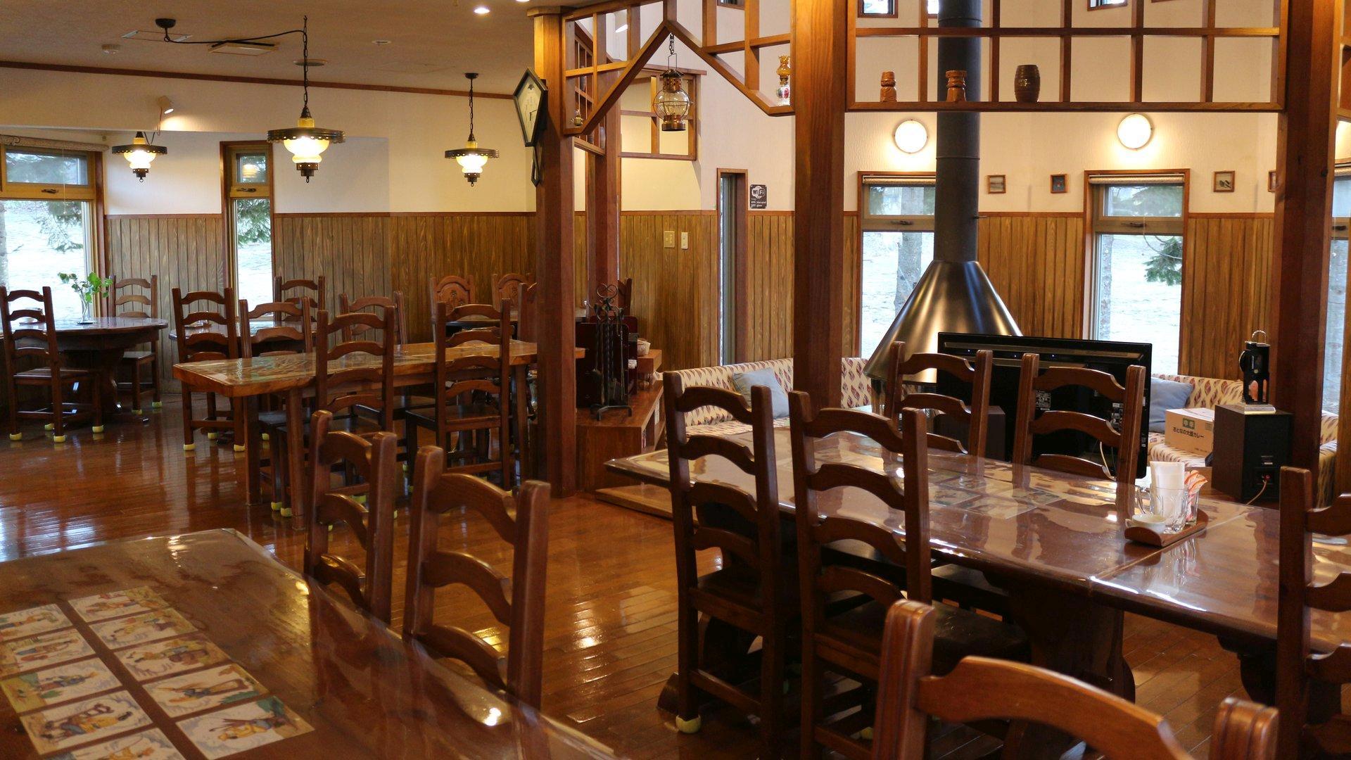 ・北欧スウェーデンから輸入した暖炉と自然に囲まれたダイニング。